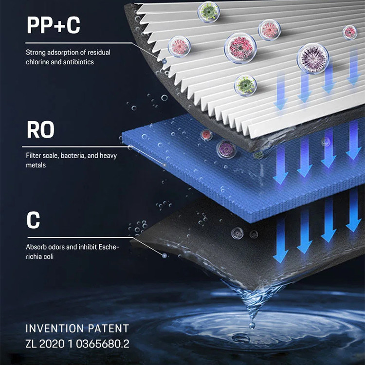 Thanks to its advanced filtration system, the IMRITA IMT-NC9 water purifier is able to remove impurities and contaminants from tap water with incredible accuracy. Its filtration accuracy is 0.0001μm, ensuring that even the smallest particles are removed. The filter type used in this water purifier system is PPC+RO+CTO, which includes a strontium-rich carbon filter.